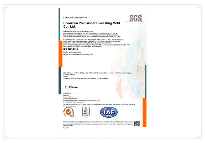 深圳市品成金属制品有限公司は、2009年7月に設立し、アルミニウム、亜鉛及びマグネシウム合金のダイカスト金型の設計開発および製作を専門とする企業です。