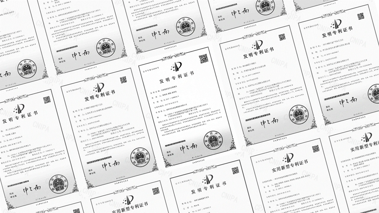 最近、深圳品成金属制品有限公司は国家知識産権局より5件の発明特許および多数の実用新案特許を授与されました。これらの成果は、同社が技術革新および研究開発分野において有する実力と達成した業績を際立たせるものです。